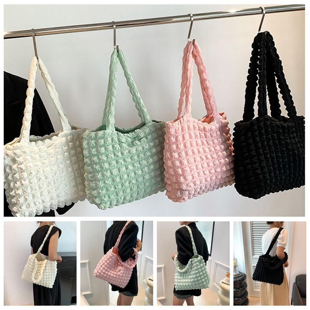 Плиссированная сумка через плечо, однотонная большая сумка, модная сумка-пузырь для девочек
