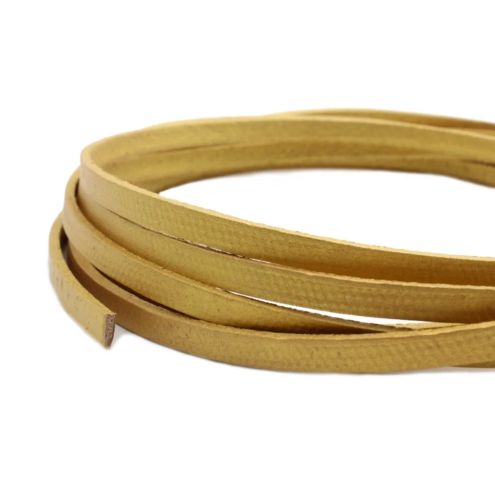 Плоский золотистый кожаный шнур 5 мм шириной 2 мм для изготовления ювелирных изделий, кожаный ремешок 5 мм x 2 мм из натуральной воловьей кожи