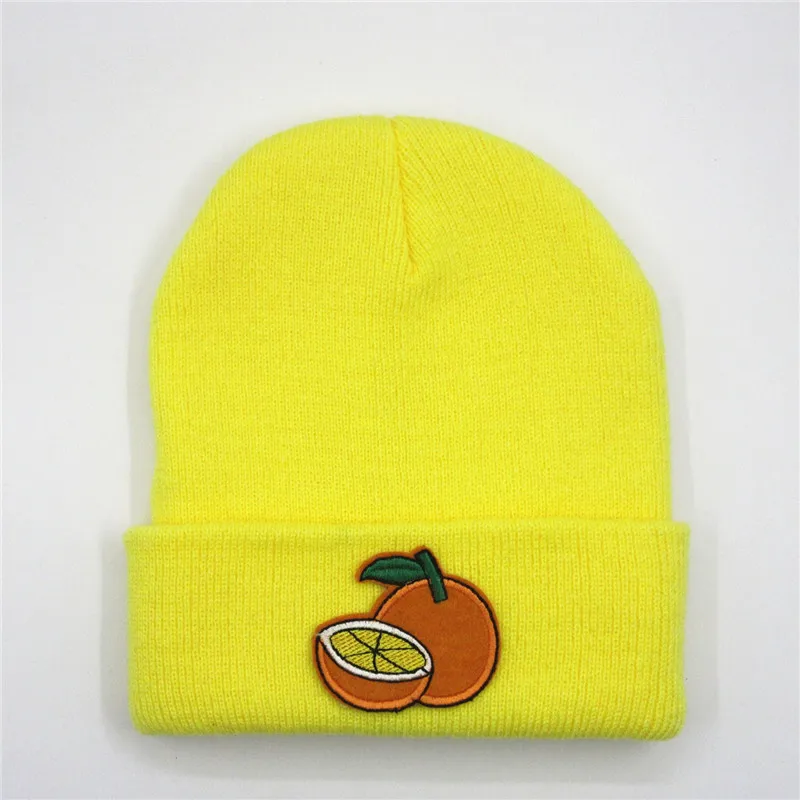 Плотная вязаная шапка из хлопка с вышивкой оранжевых фруктов, зимняя теплая шапка, шапочки, Шапка-бини для мужчин и женщин, 321