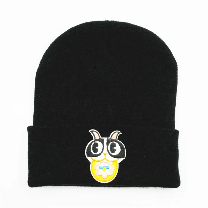 Плотная вязаная шапка с мультяшной вышивкой, зимняя теплая шапка, шапочки, шапка, облегающая шапка для мужчин и женщин 328