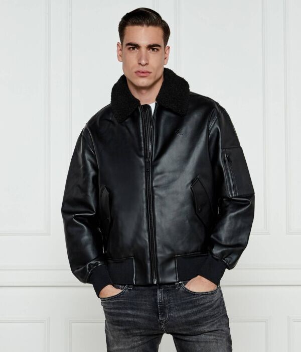 Куртка мужская Calvin Klein Jeans из искусственной кожи с меховым воротником, черный