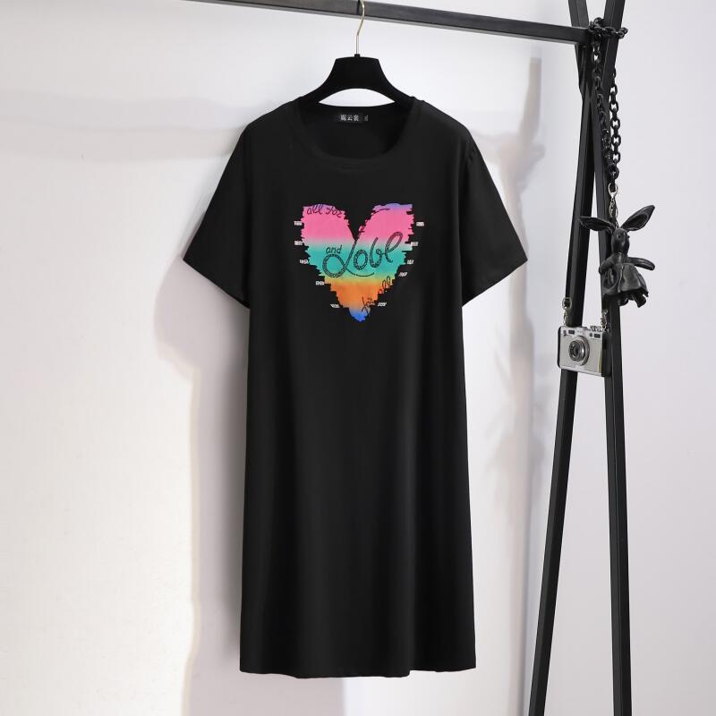 Плюс Размер Женское Летнее Короткий Рукав Новое Свободное Повседневное Прямое Платье Средней Длины 7XL чёрный