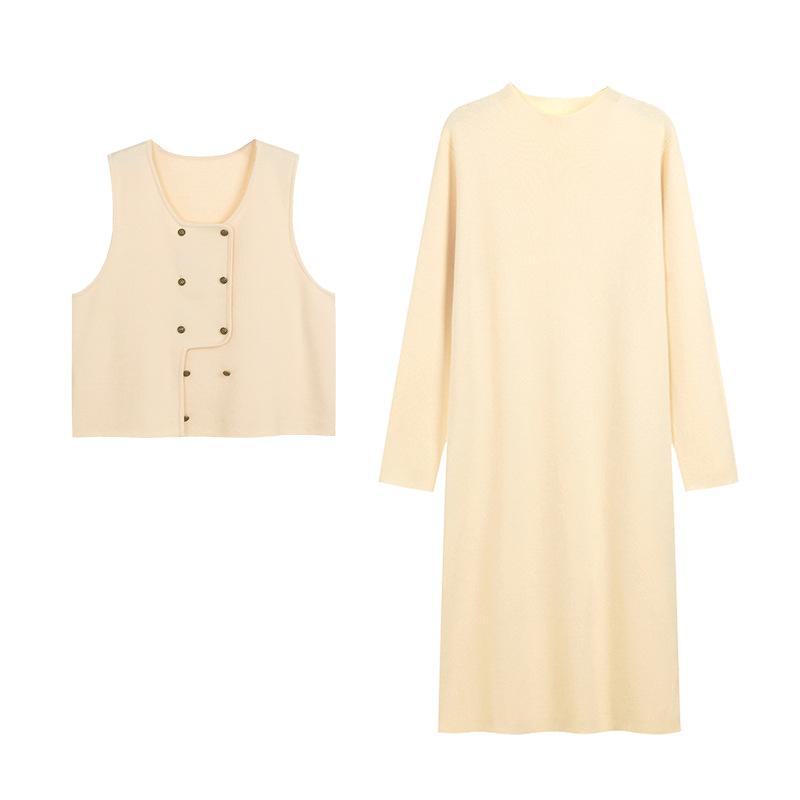 Плюс Размер Половина Высокий воротник Платье Женский Жилет Зимний Трикотажный Костюм 3XL абрикосовый