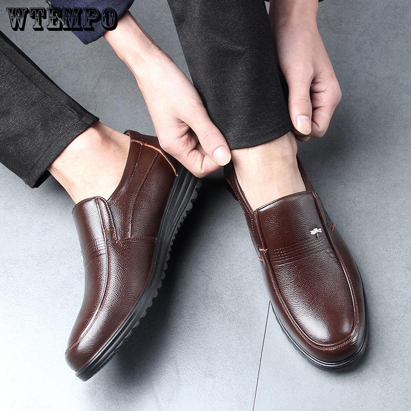 Плюс бархатные теплые кожаные туфли, мужские деловые повседневные кожаные туфли, нескользящая мягкая подошва 44 коричневый