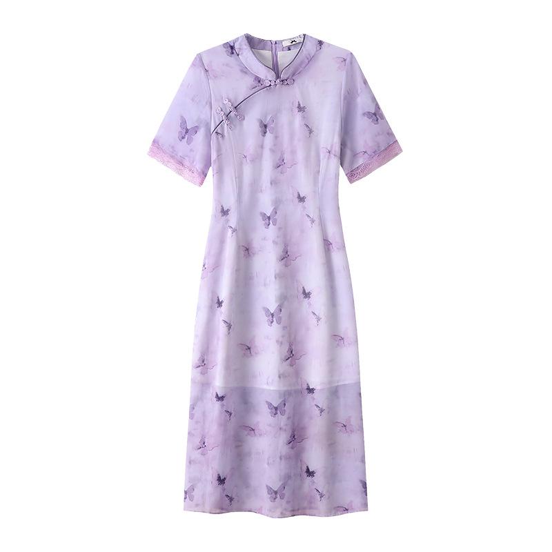 Плюс размер женское ретро новое китайское платье ципао в национальном стиле молодежное платье 2XL фиолетовый