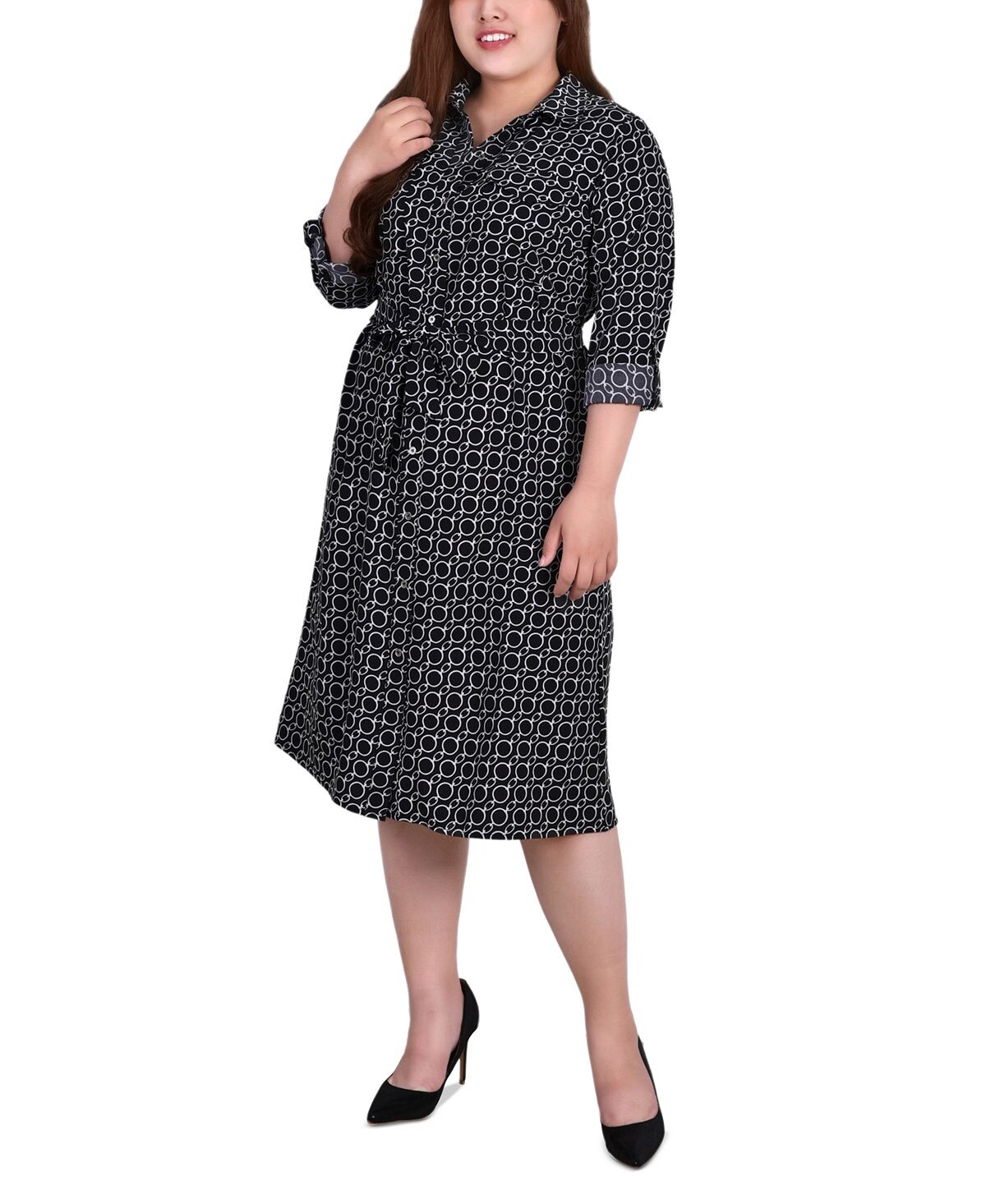 Создайте безумно шикарный образ с платьем-рубашкой больших размеров из NY Collection с декоративными пуговицами и забавным принтом.