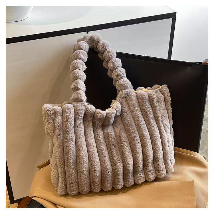 Плюшевая большая зимняя сумка-тоут: Модная пушистая сумка через плечо для женщин, универсальная и вместительная. кофейный