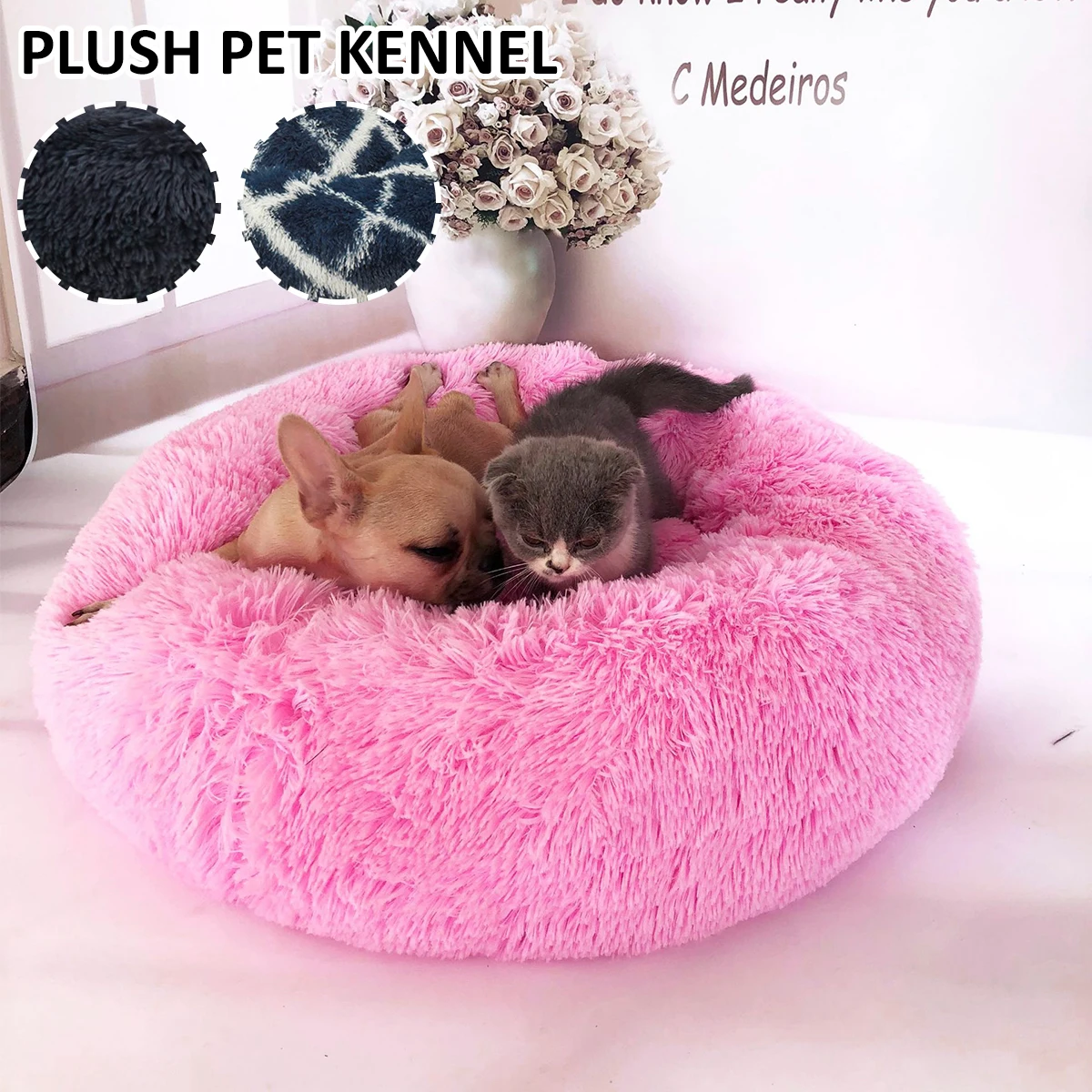 Плюшевая кровать для собаки, круглая кровать для питомца, мягкая кровать для кошек, моющаяся Съемная удобная кровать для сна, подушка для ще...