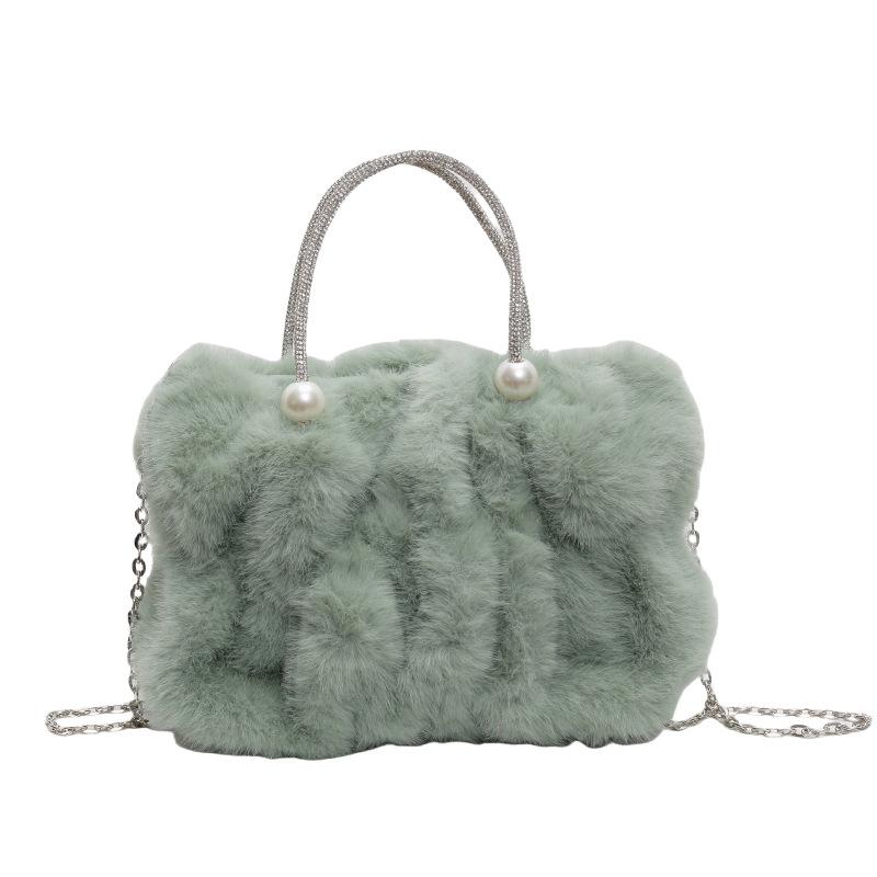 Плюшевая сумка женская сумка на цепочке однотонная сумка через плечо сумка-мессенджер маленькая квадратная сумка зелёный