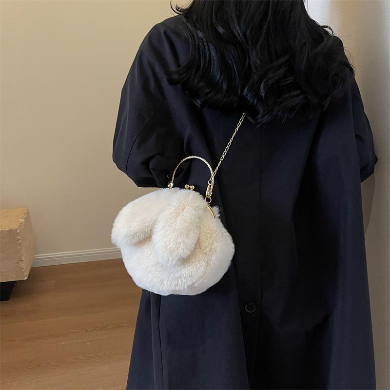 Плюшевая сумка 2024 года, новая модная сумка-мессенджер на цепочке, симпатичная универсальная студенческая сумка с заячьими ушками