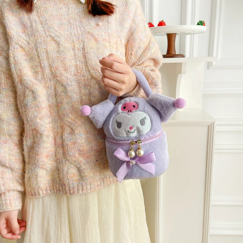 Плюшевая сумка Hello Kitty Kawaii Sanrio аниме Сумочка Cinnamoroll Kuromi Melody Мультяшные мягкие Наплечные косметички для девочек Подарки