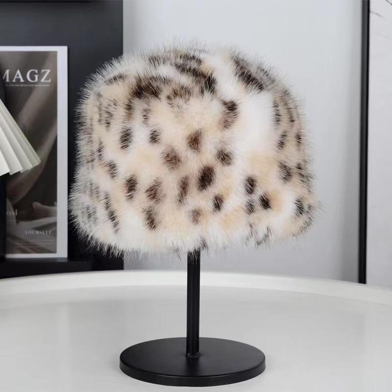 Плюшевая шапка женская осенне-зимняя новая панама из кроличьего меха плюшевая термошапка большая окружность головы панама One Size цветной печати леопарда