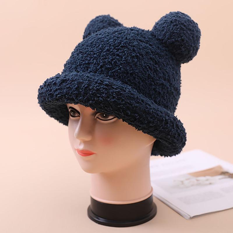Плюшевая шапка женская осень и зима лицо медведь свежая студентка милая ушки Микки панама универсальная average size (56-58cm)