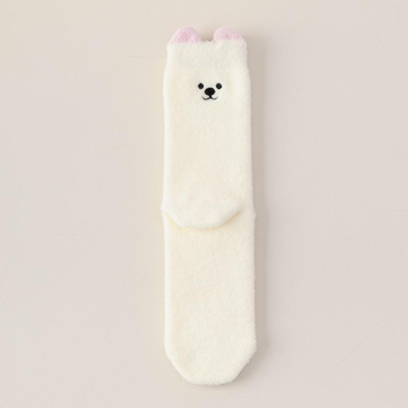 Плюшевые носки для девочек на зиму, утолщенные и вышитые, милые мультяшные носки для девочек, теплые с белым медведем, длинные носки с напуском 1 pair