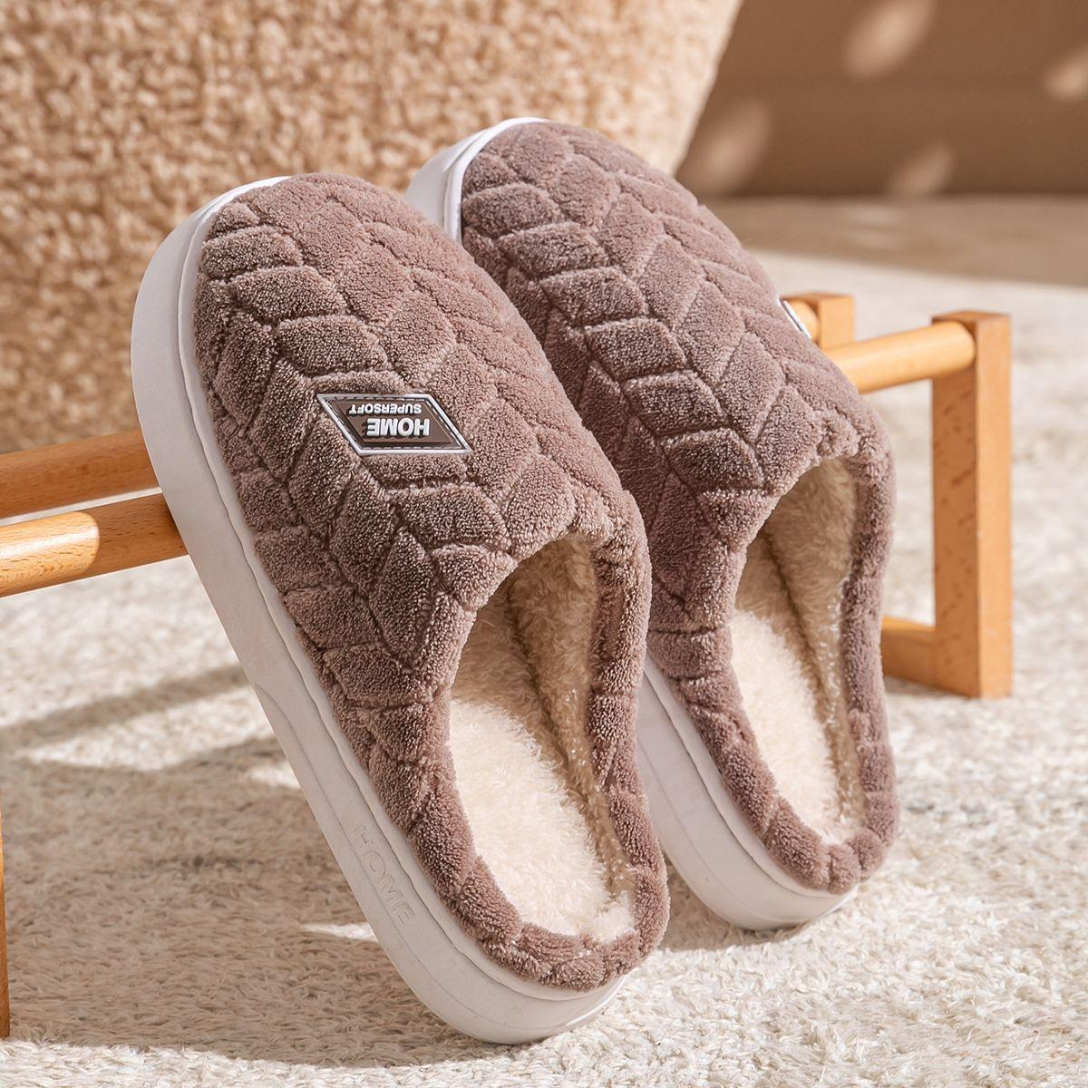 Плюшевые хлопковые тапочки 2025 осень и зима новые домашние для помещений толстая подошва теплые парные хлопковые тапочки зима 44-45
