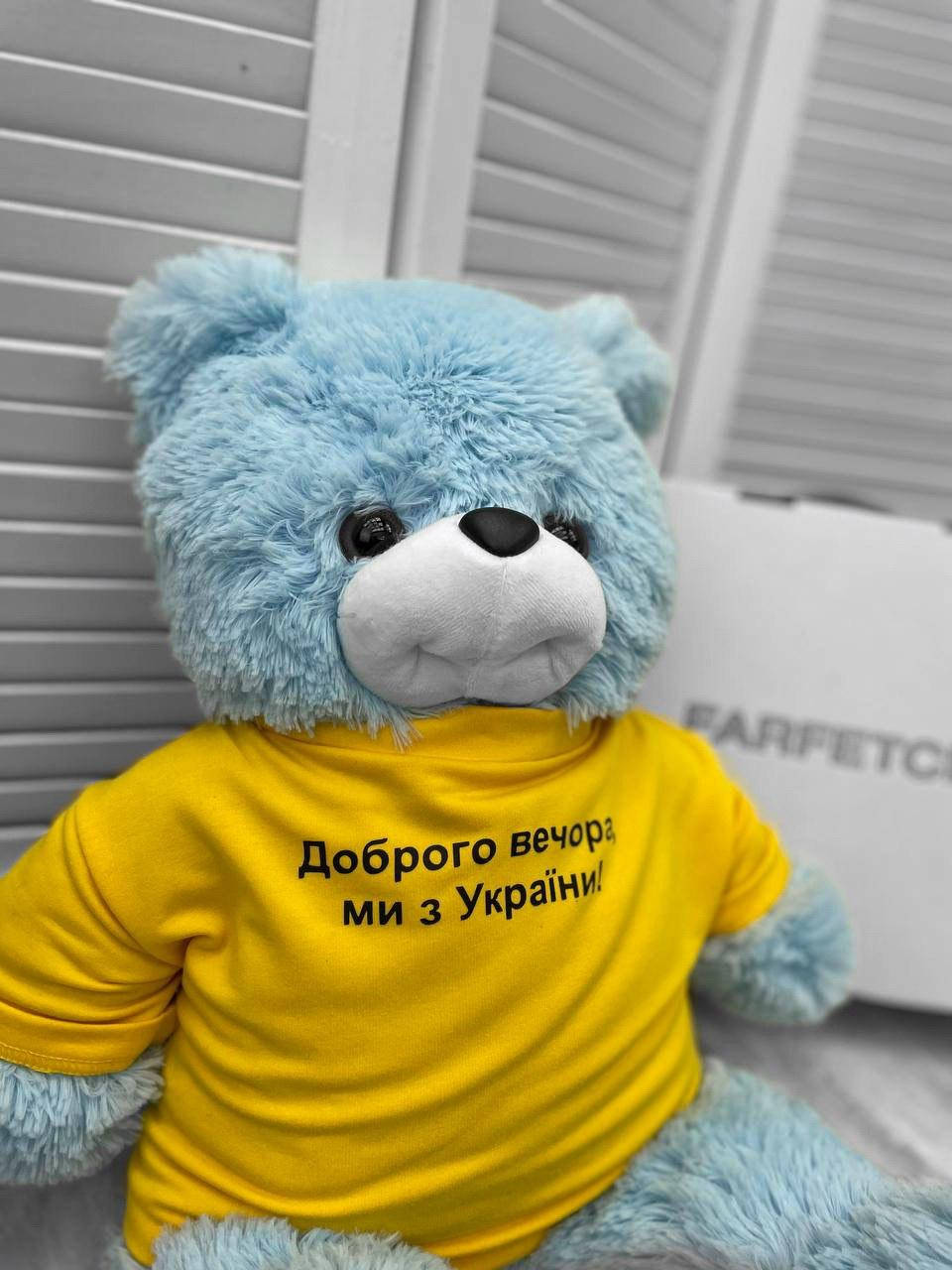 Плюшевый мишка патриотический с футболкой "Доброго вечора, ми з України!"