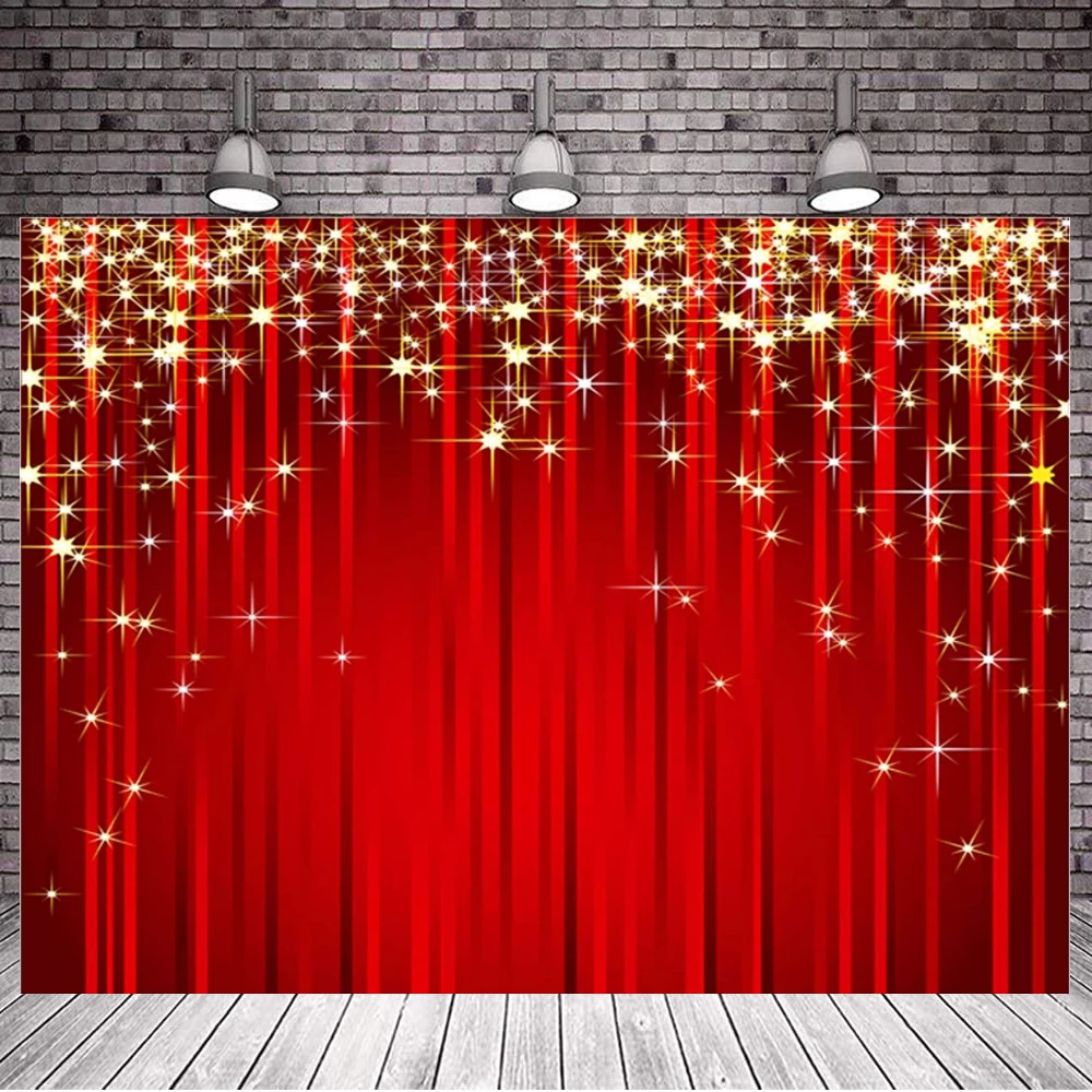 Золотой Звездный красный фон для фотосъемки Блестящий Звездный полосатый фон для свадьбы дня рождения Рождества вечеринки баннер детское украшение