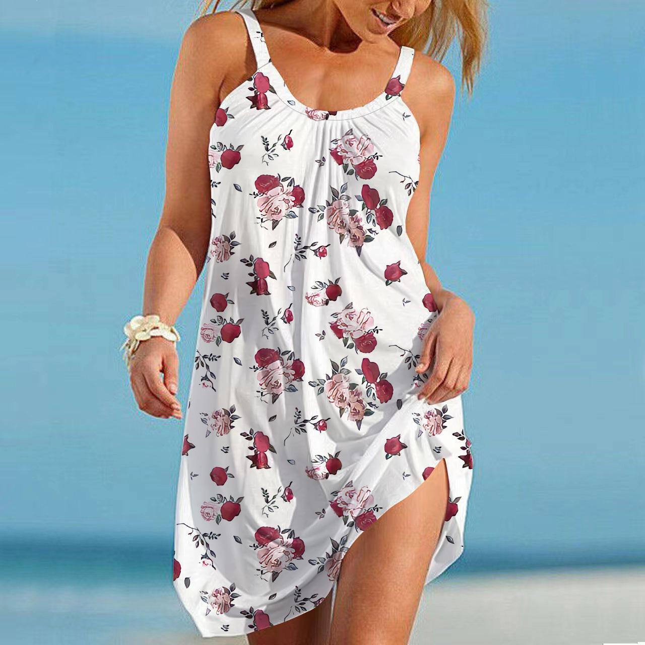 Пляжная одежда Мини-платье с бантом и принтом Повседневное современное платье без рукавов Свободный крой Повседневное летнее платье для улицы 7XL розовый