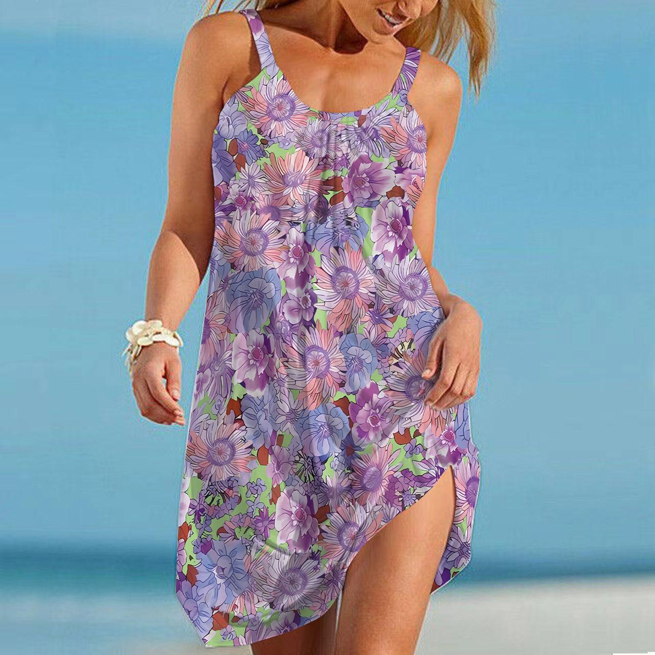 Пляжная одежда Мини-платье All Flowers Bloom Together Print Повседневное современное платье без рукавов Свободный крой для улицы Повседневное летнее 3XL фиолетовый