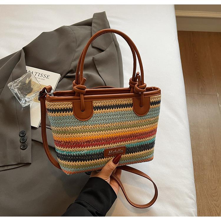 Пляжная плетеная маленькая сумка Женская новая летняя сумка через плечо, сумка-мессенджер, сумка-ведро, соломенная сумка большой вместимости, соломенная плетеная сумка-тоут коричневый