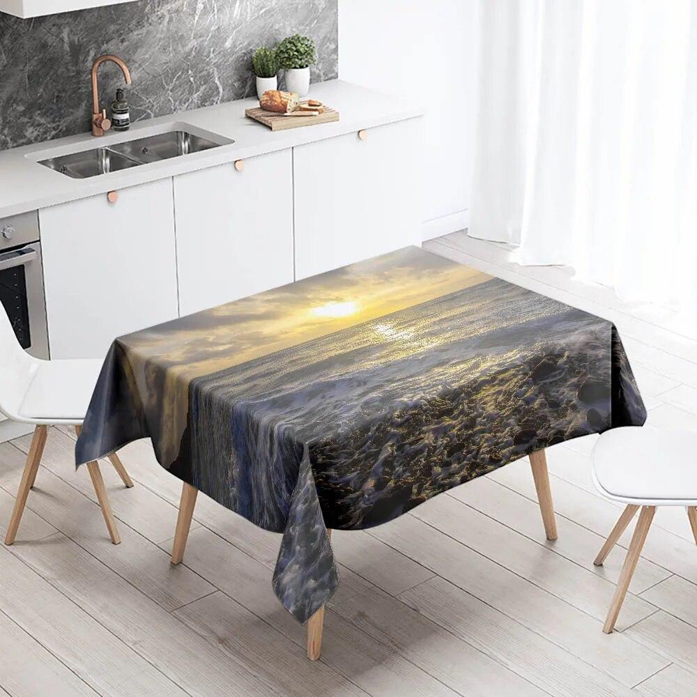 Пляжная скатерть Морской закат с защитой от пятен Водонепроницаемая прямоугольная кухонная обеденный стол Домашний декор 40x70cm