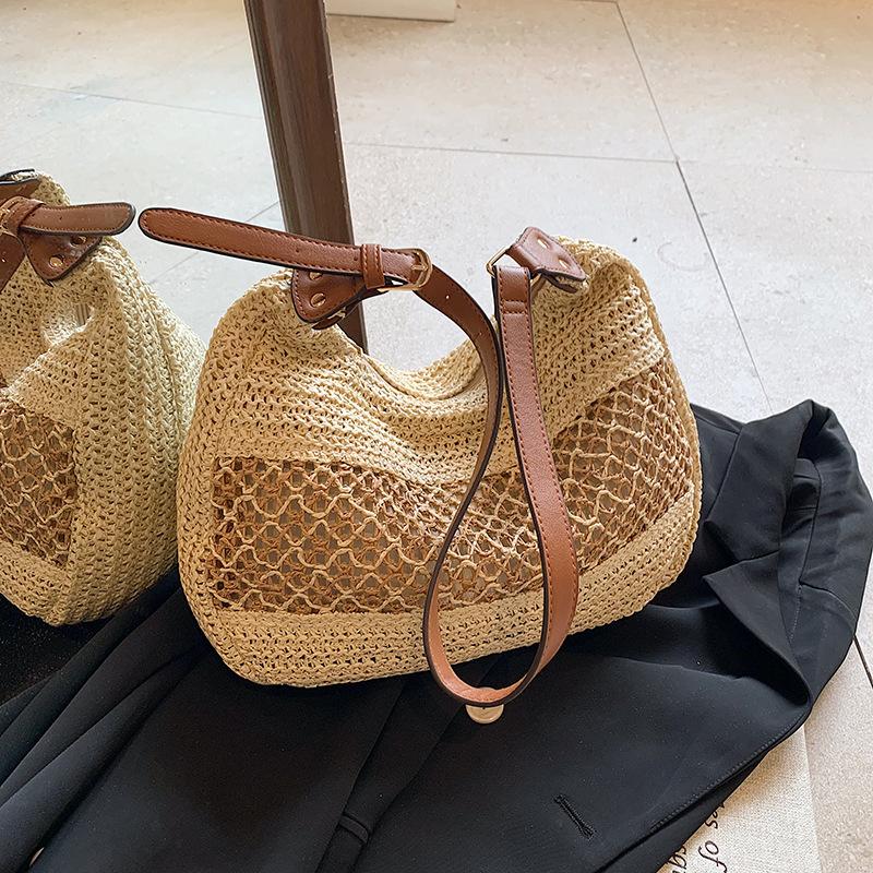Пляжная соломенная сумка в праздничном стиле, женская, новая модная, плетеная сумка с прорезями, повседневная универсальная сумка через плечо, сумка-мессенджер, плетеная соломенная сумка-тоут для женщин