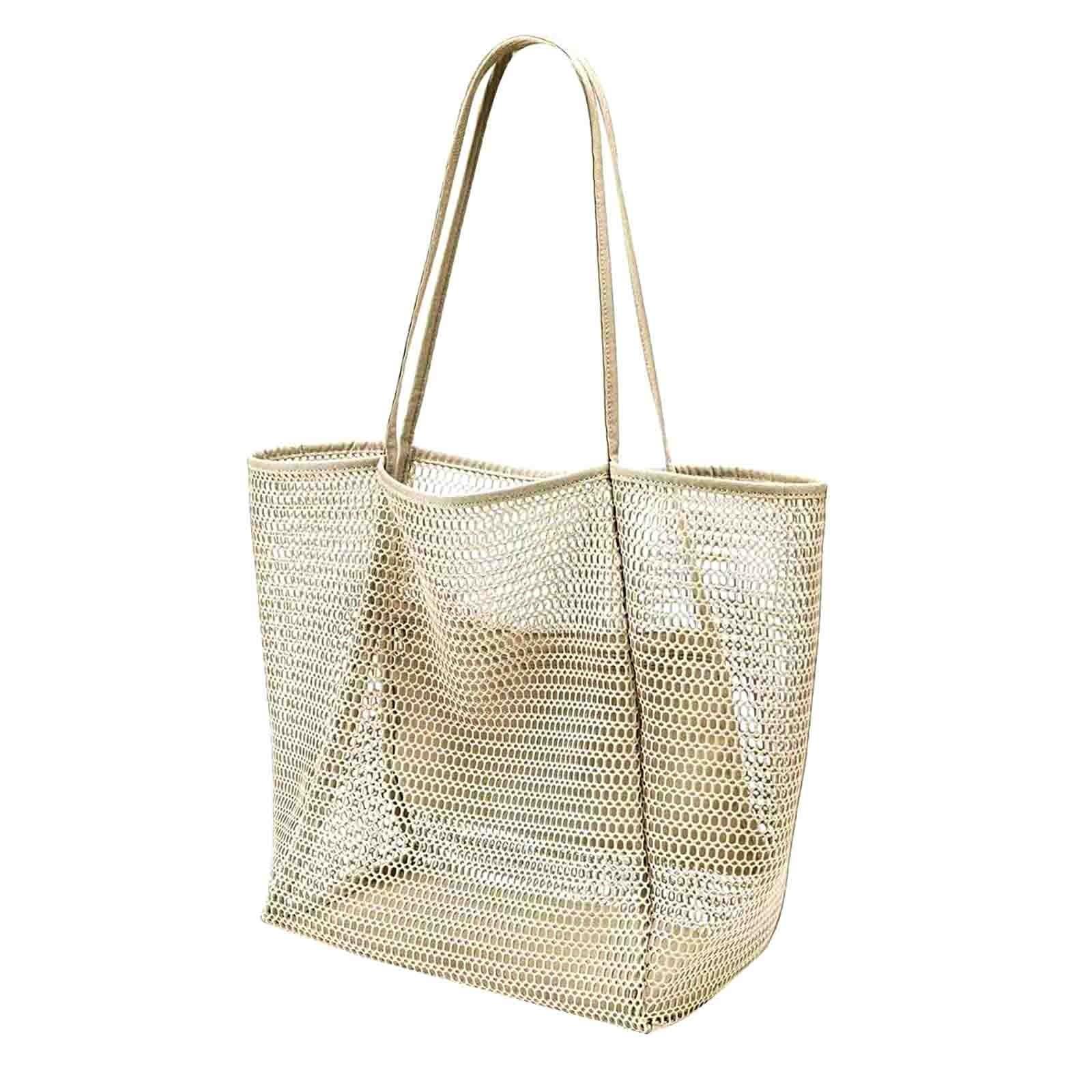 Пляжная сумка, сетчатая сумка-тоут на одно плечо, женская ручная стирка, сумка для хранения одежды для плавания, большое и маленькое отверстие на молнии One Size бежевый