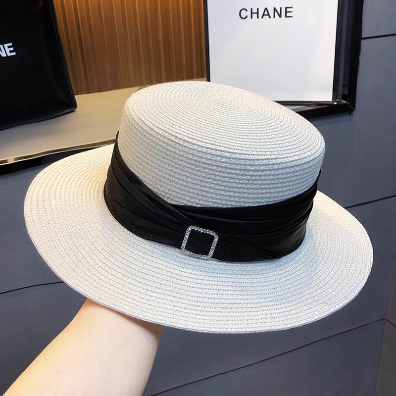 Пляжная шляпа для прогулок у моря детская 2025 новая летняя солнцезащитная шляпа от солнца в стиле знаменитости, с передовым чувством, соломенная шляпа с плоским верхом Adjustable белый