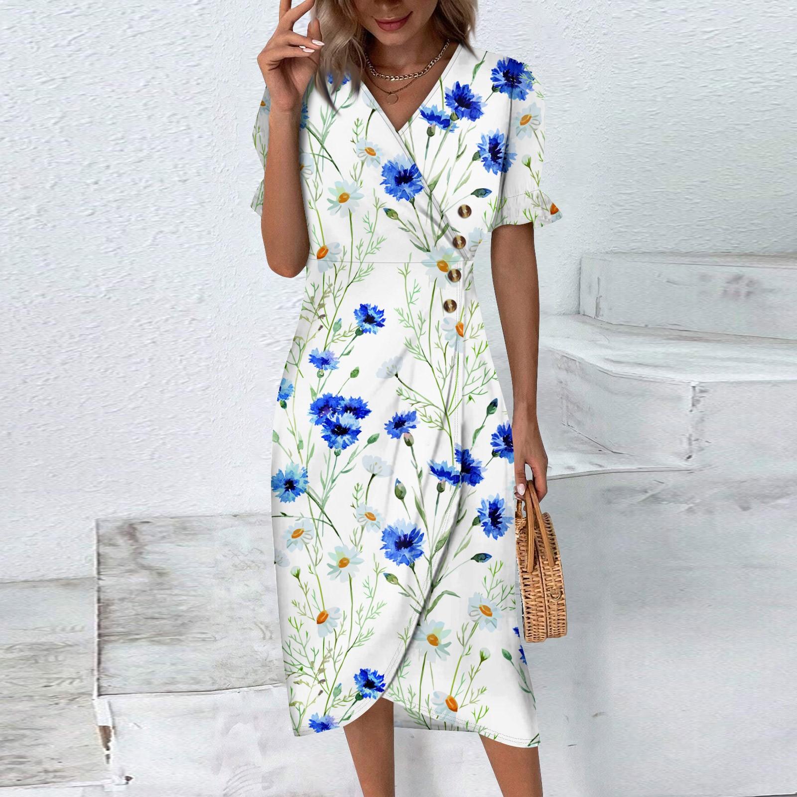 Пляжные платья для женщин, весна-лето, элегантное платье с V-образным вырезом и цветочным принтом в стиле бохо, струящееся гавайское платье макси с рюшами XL белый