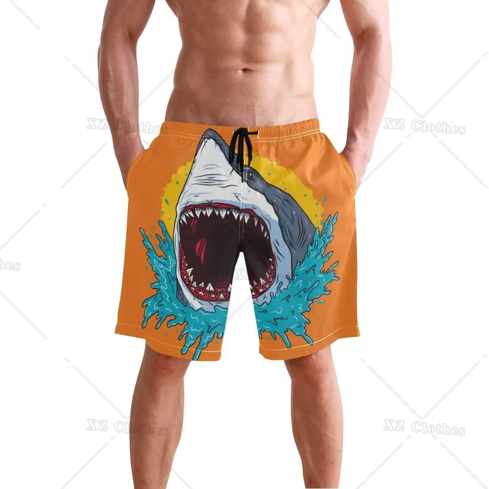 Пляжные шорты Shark Orange, Летние плавки, спортивные купальные костюмы для бега с сетчатой подкладкой и карманами