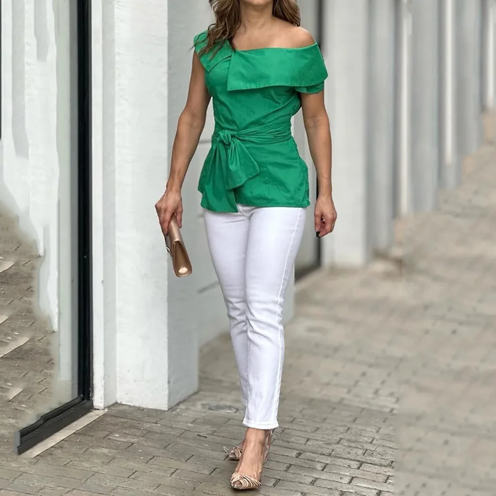 Пляжный однотонный Повседневный Топ без бретелек и брюки, комплект из двух предметов для женщин, зеленая, белая
