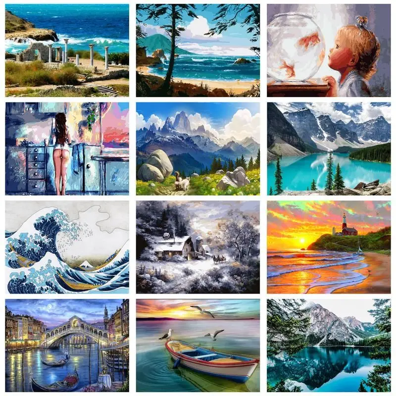 CHENISTORY DIY Pictures By Number Snow Mountain Kits Drawing On Canvas Painting By Numbers Seascape HandPainted Gift Home Decor