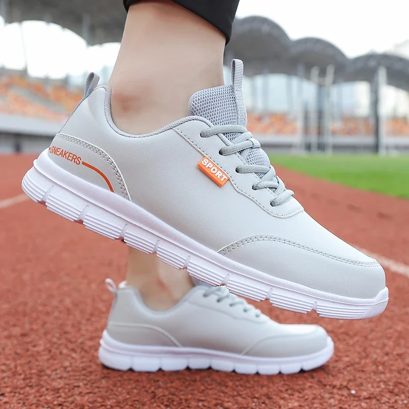 Men's Black Leather Running Shoes Lace Up Lightweight Sports Shoes Fashionable and Casual Black Men Fitness Training Shoes 2025