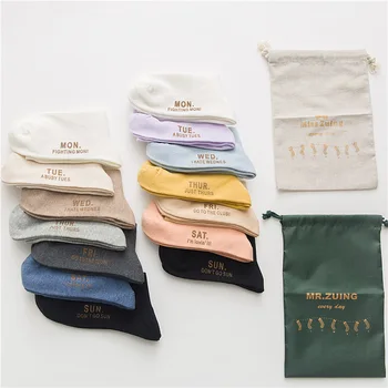 new Unisex socks 7 pairs cotton letter long autumn men week socks new style happy high quality women casual socks gift