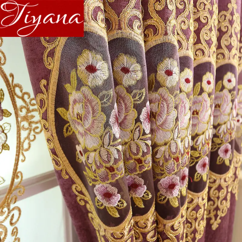 European Living Room Hollow Embroidery Chenille Curtain Fabric Purple Window Treatment Blinds Sheer Cortinas X571#30