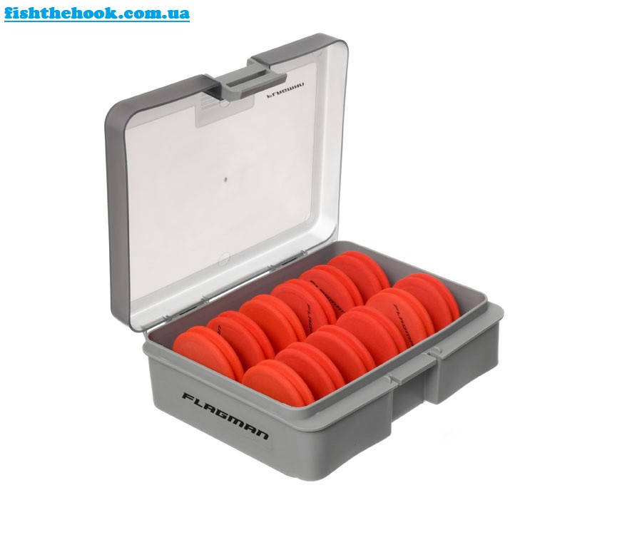 Flagman Eva Rig Spools NJ2512 – удобный бокс с двенадцатью круглыми шпулями для хранения и транспортировки поводков и готовых оснасток. Прозрачная крышка позволяет видеть сквозь нее шпули, закрывается на одну защелку надежной конструкции.