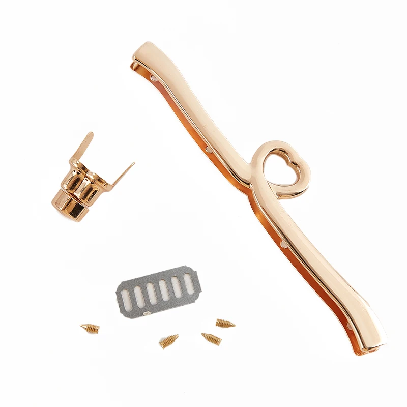 Поворотный замок для сумки, в форме сердца, металлический, прочный, тканевый, цвет золотой, застежка для сумки