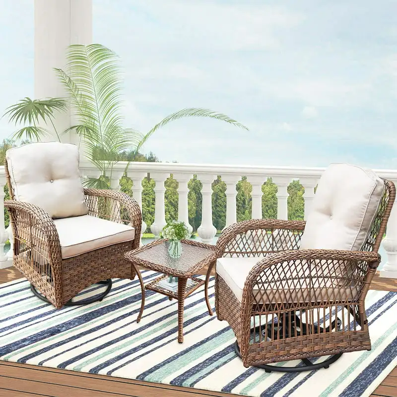 Поворотный разговор 3 шт ротанговая группа сидений с подушками-цвет коричневый