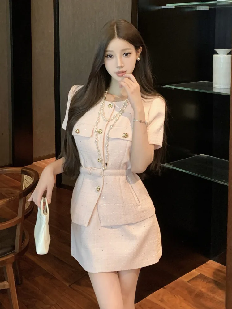 High Quality French Small Fragrant 2 Piece Sets For Women Sweet Jacket Coat + Short Skirt Two Piece Outfit Conjuntos Cortos