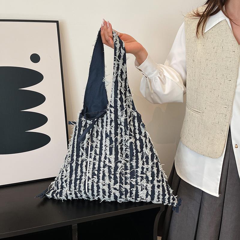 Повседневная джинсовая сумка литературная нишевая сумка под мышкой женская новая сумка через плечо под мышкой большой вместимости сумка для покупок темно-синий