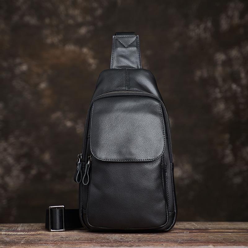 Повседневная мужская нагрудная сумка из натуральной кожи через плечо, черная трендовая сумка-мессенджер для груди 7,9 дюймов, высококачественная сумка-слинг для Ipad чёрный