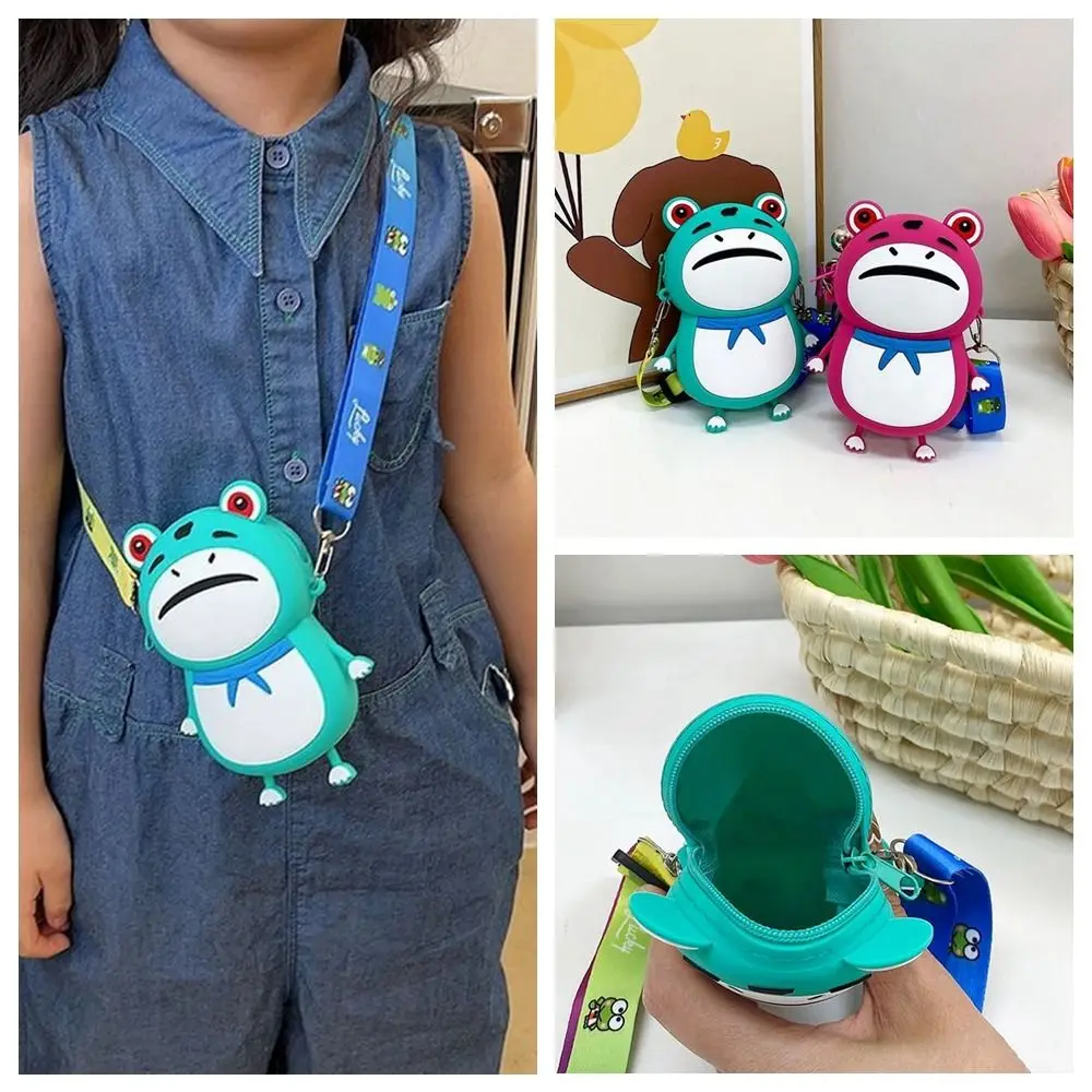 Повседневная мультяшная силиконовая сумка через плечо с лягушкой, уличная одежда в Корейском стиле, кошелек для монет с животными, мультяшная сумка через плечо для девушек