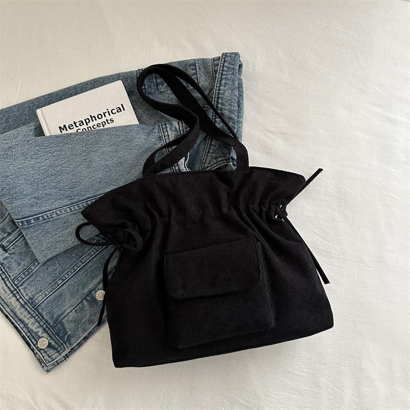 Повседневная персонализированная сумка-тоут для женщин 2024 года, новая модная простая сумка через плечо для студентов, сумка-ведро большой вместимости чёрный