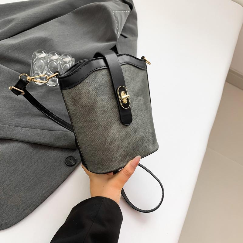 Повседневная ретро сумка женская 2024 новая летняя модная нишевая сумка через плечо простая ретро сумка-ведро женская темно-серого