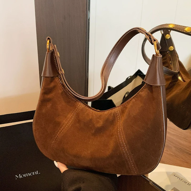 Повседневная и универсальная сумка-хобо в стиле ретро, женская тактильная нишевая сумка через плечо, модная кожаная маленькая дорожная сумка на плечо
