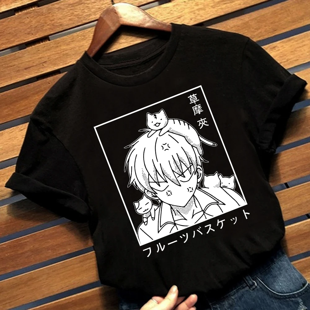 Повседневная футболка для мальчиков и девочек с японским аниме, мужские топы с корзиной с фруктами, черные Мультяшные Графические футболки для мужчин, Прямая поставка