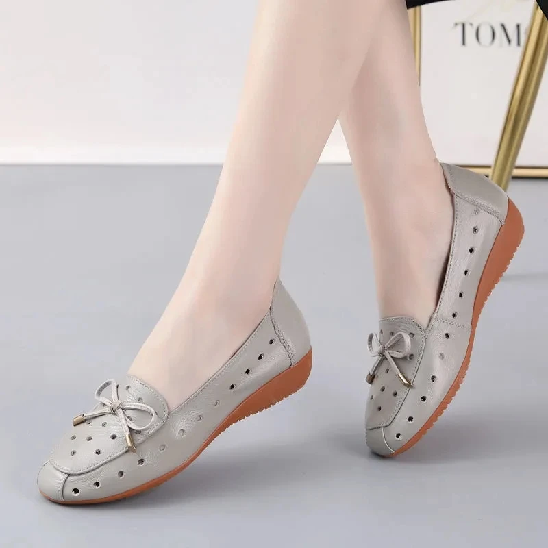 Повседневные Туфли-балерины из натуральной кожи, милые стильные женские туфли с бантом, удобные летние туфли на плоской подошве