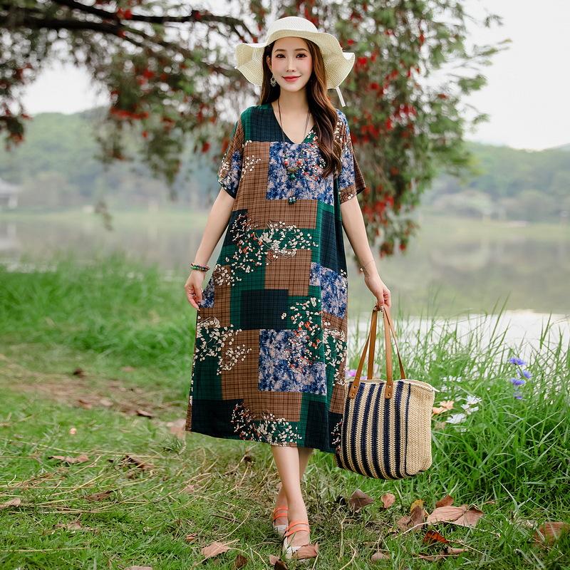 Повседневные женские платья Летняя винтажная одежда Большие размеры Элегантное летнее длинное платье с коротким рукавом XL