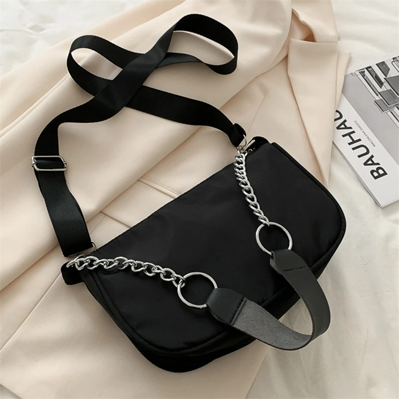 Повседневные женские сумки через плечо, нейлоновая сумка на цепочке, винтажные черные Наплечные сумки для девушек, уличная сумка-мессендже...