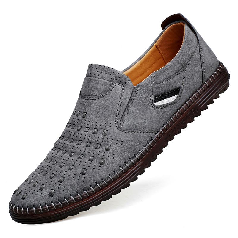 Повседневные кожаные мужские лоферы Бренд Повседневная формальная деловая обувь Высокое качество Итальянская дышащая противоскользящая обувь для лодки Большой размер 38-48 48 серый